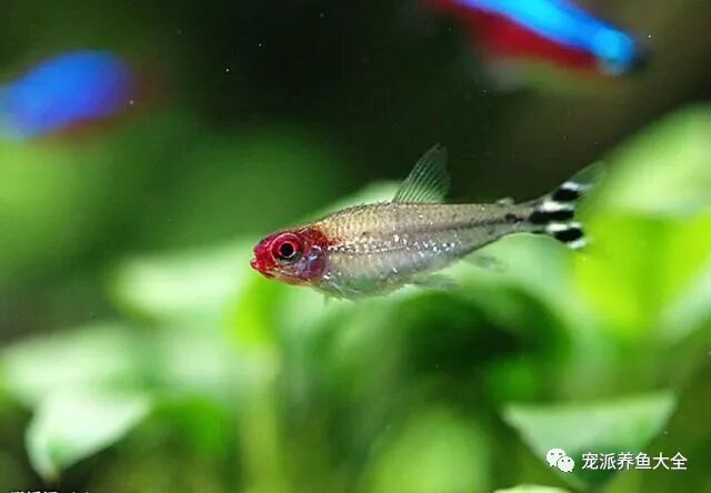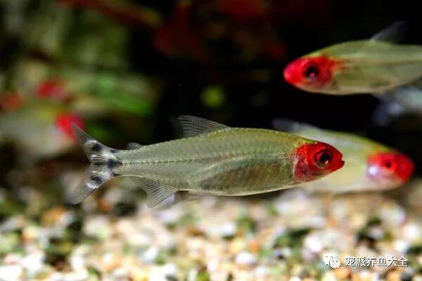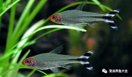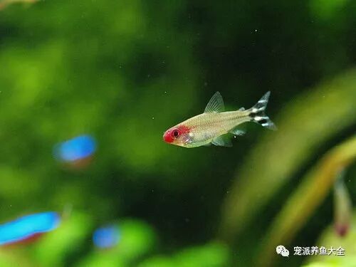 红鼻剪刀鱼,别称红鼻剪刀、红鼻鱼,属于脂鲤科,是一种气质高雅的小型热带观赏鱼。性情温和,体格强健,容易饲养,适合群养,群游的观赏效果极佳,其尾部的花纹引起众多水族爱好者的追捧。