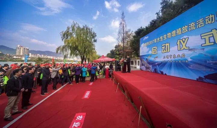 12月8日上午,由市农业局主办的三明市2017年水生生物增殖放流活动暨公益平台启动仪式在梅列区江滨公园列东大桥下举行。市政府副市长肖华鑫出席活动并讲话。