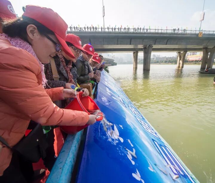 据了解,在今天的活动中,共向沙溪河投放花䱻、白鲢、鳙鱼等鱼种150万尾,为母亲河永葆生机注入新的生命和活力。同时,在列东大桥下新建了一个增殖放流公益平台,今后将定期在公益平台开展增殖放流活动。