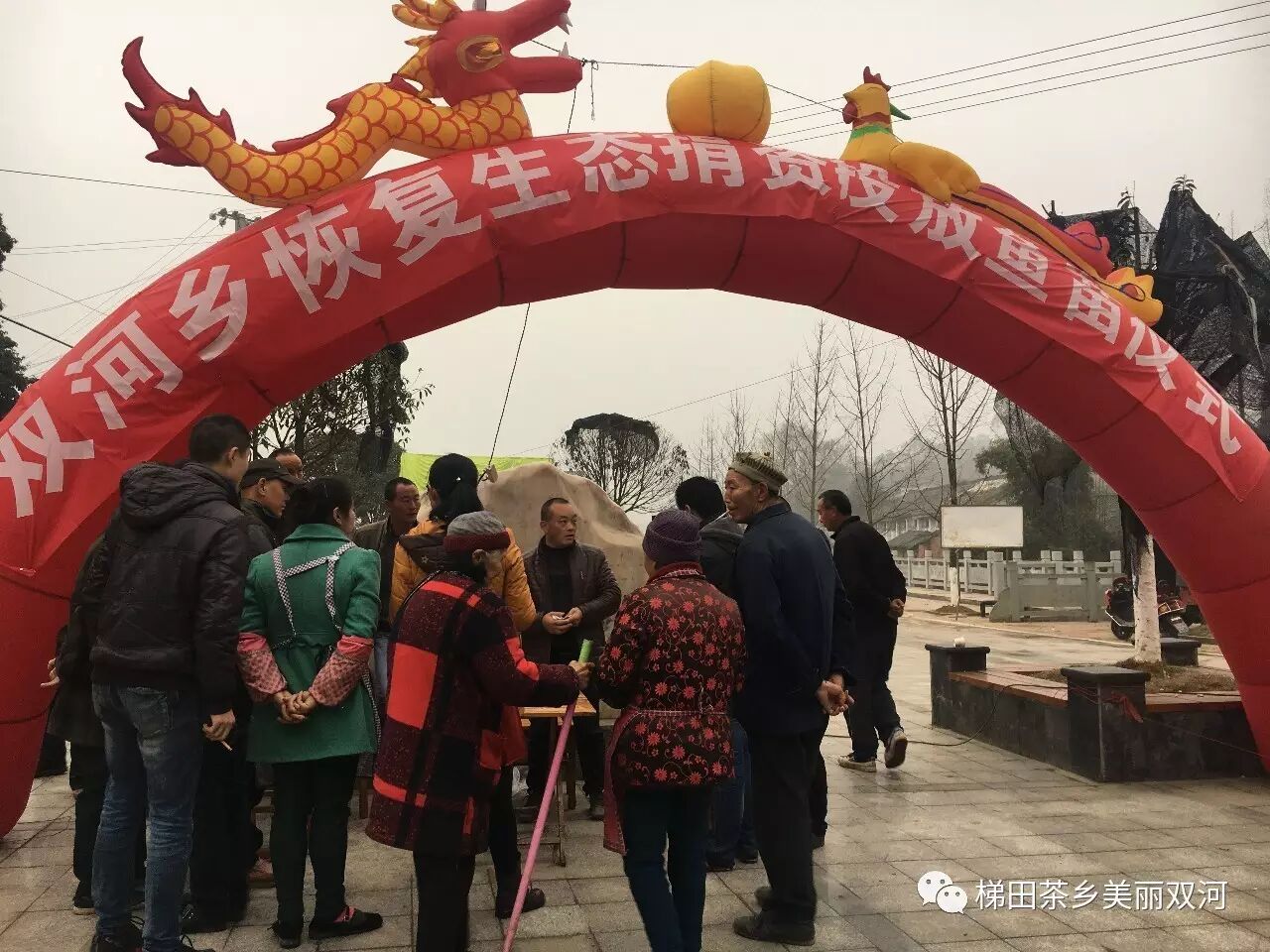 2017年2月21日,双河乡保护生态志愿者协会举办 “保护碧水蓝天,共建绿色家园”为主题的鱼苗放归活动,近2000斤鱼苗被放归延镇河。
