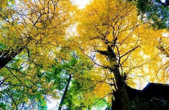 白岩寺是个藏在山中的寺,寺中的银杏来历要追溯到明朝,有明朝和尚曾经种下了几千颗银杏,不过到后来只剩十多株了。