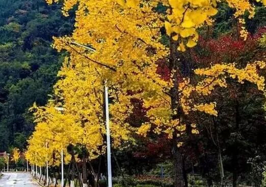 乐山这个总长只有3公里的朝霞路,沿着路边栽种了大量的银杏树。