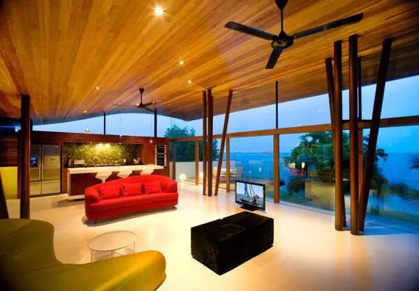 鱼之屋是一个位于热带的现代住宅,完美的综合了当地的气候和环境特点,并且开放的空间最大限度的利用自然通风和从地板到天窗一览无余的海景景观。