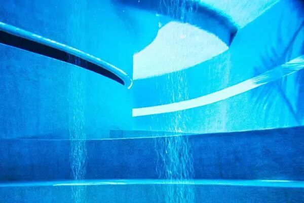 地下层音响室的U形丙烯酸材料的窗使得连通的想法得到进一步体现,不同的自然光可以透过这些窗照进室内,同时还可以透过这些窗看到泳池内部。