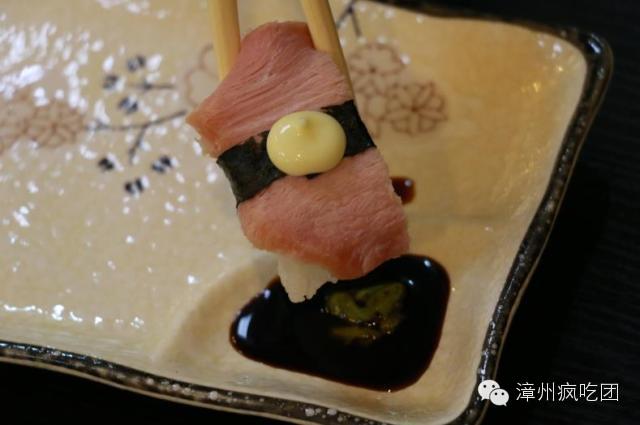 每个寿司上搭配海鲜恰到好处