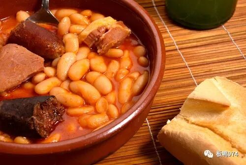 阿斯图里亚斯最著名的菜肴是Fabada(炖大黄豆)。将Fabada小火焖煮一个半小时左右,之后加入培根、chorizo、火腿骨和血肠一同食用,味道简直棒极了。
