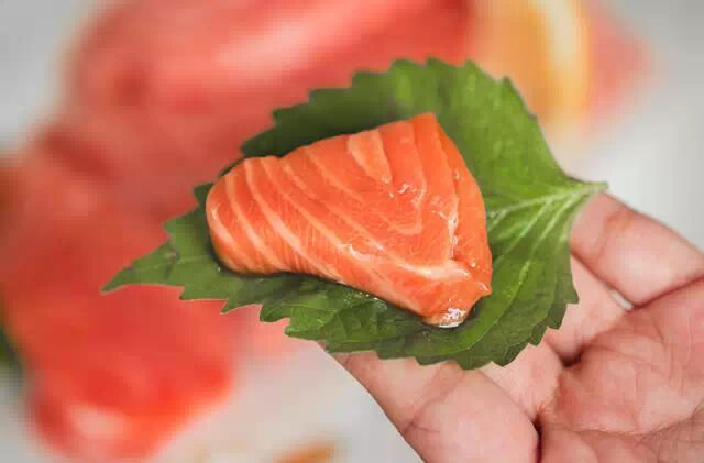 有没尝试过呢?用紫苏叶包住三文鱼食,味道会怎样?只可以跟你讲完全是吃三文鱼的另一个全新体验味蕾感受!