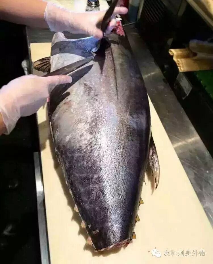 大厨在切迷你深海金枪鱼~好想吃好想吃!