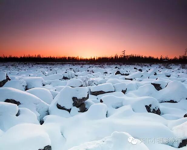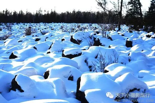 冬天的这里可以自由发挥自己的想象进行创作:块块石头披着洁白的雪衣,闪着耀眼的星光,有的像小熊有的像小猪,还有的仿佛是小企鹅从南极摇摆着走来体验北方的冬天,更多地都变成了雪蘑菇,好像大地长了白色耳朵,倾听人类的声音,分享人类的欢乐……