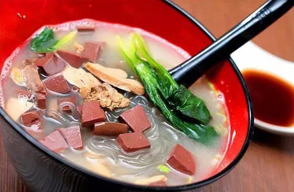 鸭血粉丝是南京的传统名吃,由鸭血、鸭肠、鸭肝等加入鸭汤和粉丝制成,口味平和,鲜香爽滑。