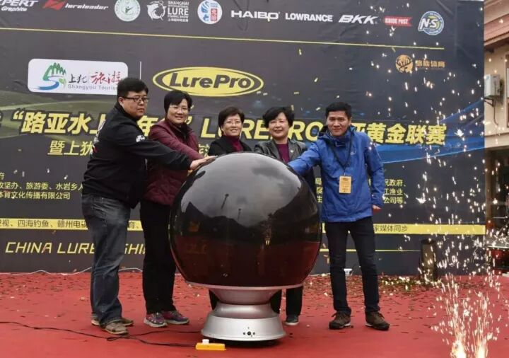 ▲ 市旅发委主任李诒芸等领导嘉宾出席并启动2017中国•上犹路亚水上嘉年华(LUREPRO路亚黄金联赛)暨“上犹首届渔文化旅游节”