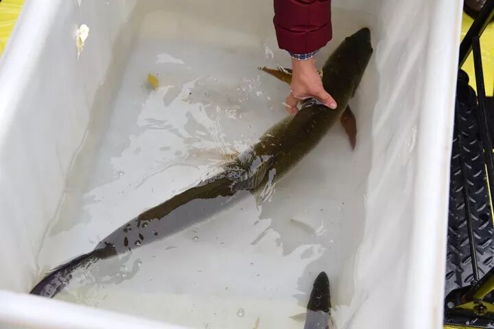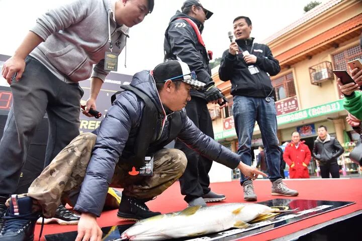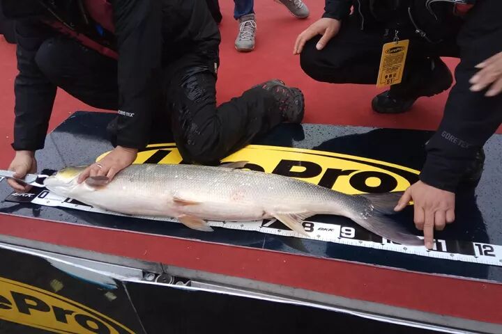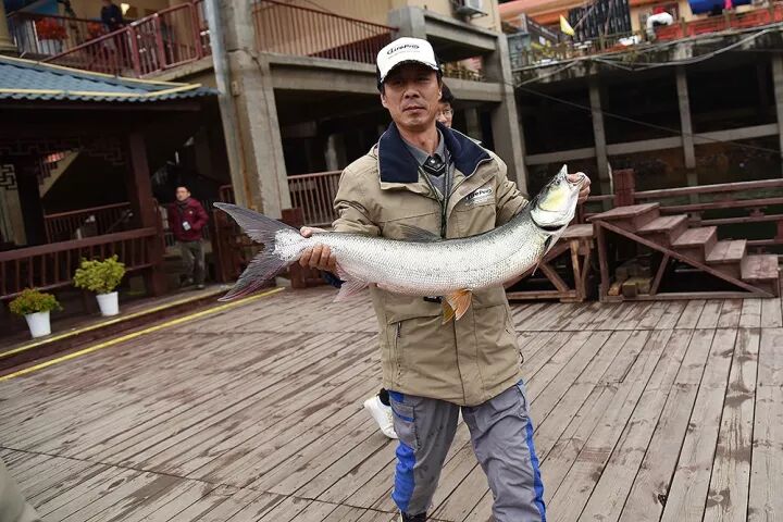 ▼参加比赛的51组选手,第一条钓上来的鳡鱼。