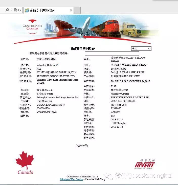 为了确保每一条源自于加拿大野生淡水鱼的真实性、唯一性、安全性和出口商的信誉,由加拿大英颁斯物联网科技有限公司所研发的“基于RFID技术的全球水产物联网追溯验证系统”对每条源自于加拿大野生淡水鱼从捕捞至餐桌全程跟踪、管理、追溯验证。让中国消费者品尝到优质的来自加拿大野生的优质鱼、安全鱼、放心鱼、健康鱼。