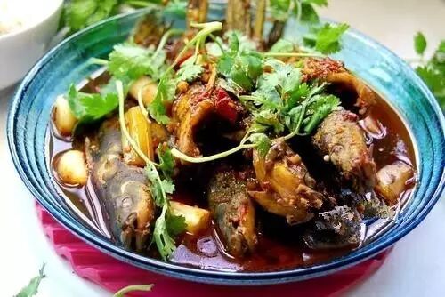 小时候,父亲还经常烧“戈鱼”。戈鱼的学名叫黄颡鱼,黄腊丁,是一种头扁身圆,浑身长刺的鱼。它的刺好像戈矛一般,尖锐无比,又非常硬,很容易戳伤人。家里买了鱼,我都要蹲在盆前摸一摸,唯独戈鱼让我望而却步。至今仍记得父亲收拾鱼,好几次被刺破了手,流出血来。戈鱼皮色黄黑,有如蛇类,烧出来品相不好,但口感甜润鲜美,而且因为只有一根脊椎骨,吃起来方便得很。祖母说,从前家里做饭,经常把戈鱼短暂腌制之后,倒插到米饭钵里一起蒸了。米饭熟透,拽着鱼尾巴一拔,一根大刺就拔了出来,饭里剩下的是整条整条的鱼肉。如果用糯米饭蒸,就更好吃了。