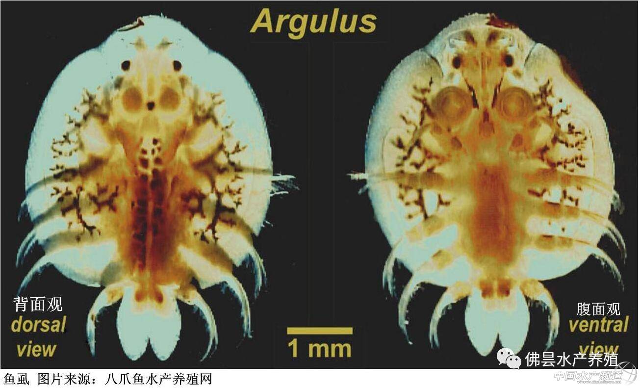 鱼虱(Argulus)和缩头鱼虱实际上是分类地位较远的两种寄生虫,鱼虱处于甲壳动物亚门下的鄂足纲,缩头鱼虱则是软甲纲,两者在大小上也差别很大,鱼虱只有5-8mm,幼虫时体小透明,肉眼较难观察得到。