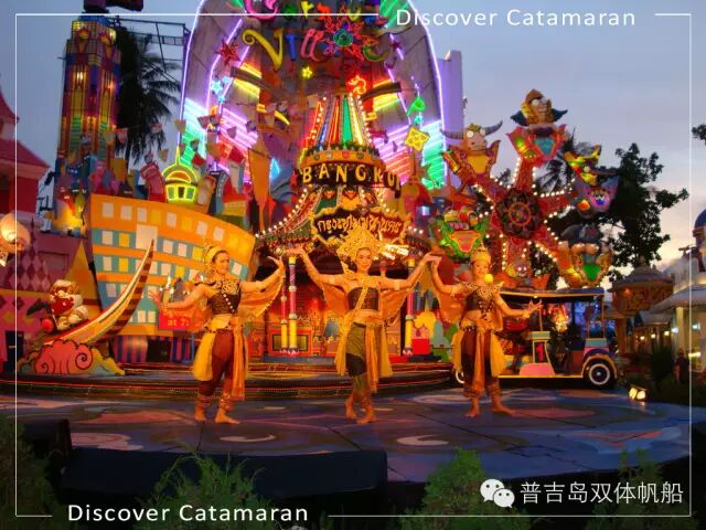 此外,这儿还包括了可同 时容纳四千人 的金娜里皇家雅宴自助餐厅,是当地著名的 水上 自助餐厅。 在不眠夜里,若要一探美丽的异国风情 ,那麼可千 万千万别错过普吉幻多奇卓越的主题乐园 ,在这里您可尽情的购物、看大秀、飨宴美食 ,保证您一夜High到底!