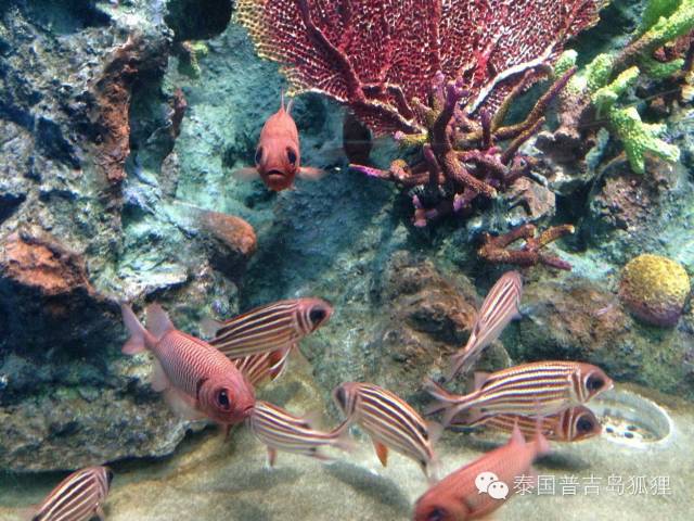 进入水族馆里面就可以看到可爱的的小鱼们被安置在圆柱型的大鱼缸中,在异样色彩的灯火照射下显得五光十色。体型硕大的大型鱼则会放在大型鱼缸中,有些大鱼甚至比客人个头还大,例如几条难得的巨型石斑。当然,这里的海底隧道看起来已经有些陈旧了,比不上北京海洋馆的高达上,但是这里一样会看到鲨鱼、魔鬼鱼等大型鱼类从身边划过。具体的狐狸不多介绍,请看图片吧~