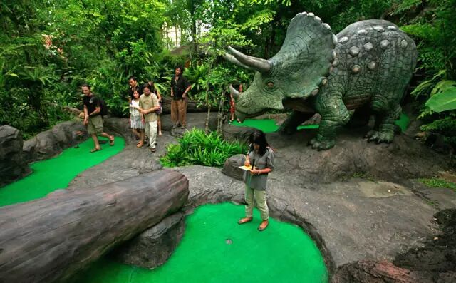 恐龙公园是一座迷你高尔夫球场兼餐厅,位于卡伦和卡塔海滩之间的海滨路上。这座 18 洞恐龙主题球场拥有许多栩栩如生的大型恐龙水泥雕塑,以及正在喷发的"火山"和《摩登原始人》主题餐厅。
