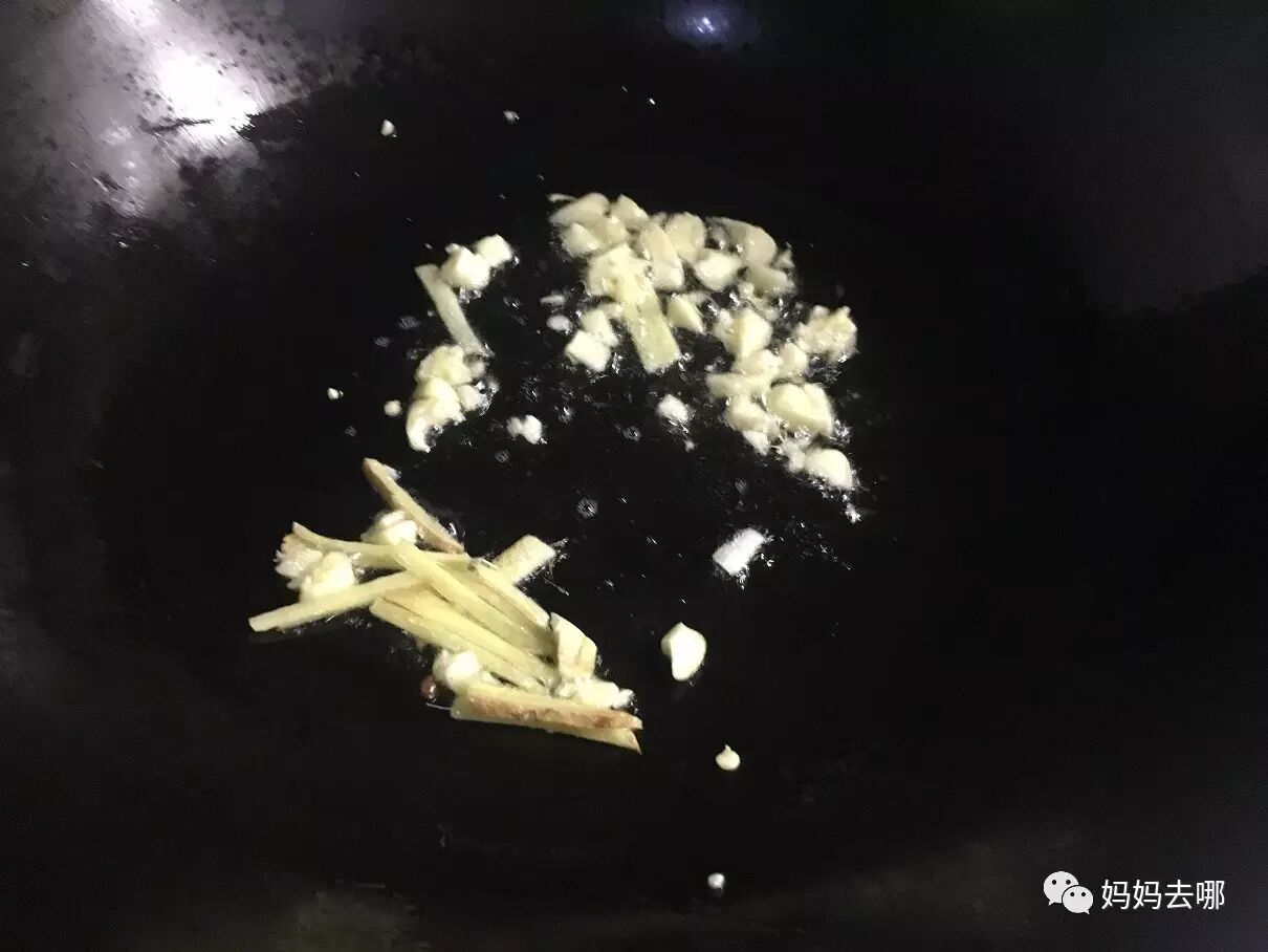 姜切丝,蒜切末,尖椒切丝。