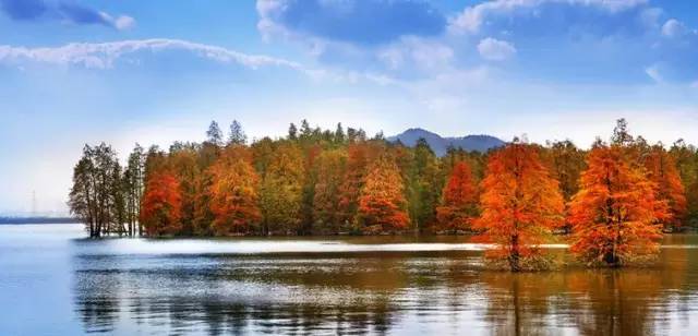 青山湖,顾名思义背靠青山的一座湖。四周群山环抱,茂林修竹,花草果木,湖面如镜,四时景色各异。湖之北有数百亩的国内罕见的水上森林,它像一块翡翠镶嵌在碧水之中。这里松竹林茂,云雾飘渺,环境十分清幽。秋天的青山湖,放眼望去,满山遍野红黄相间,这是多彩的秋,是青山湖最美的秋。