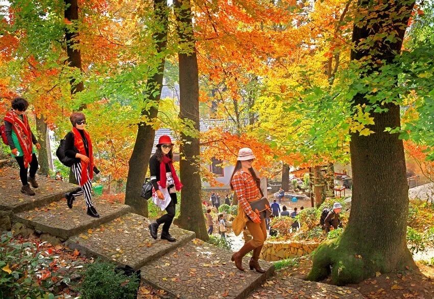 天目山具有悠久而又独特的历史,是集儒、道、佛三大传统文化于一体的宗教文化名山。自晋以来,就吸引了一批又一批名僧名仕在此修行修身,山中的一草一木,都已沾满灵气。秋季的天目山层林尽染,步行古道十华里,走走停停,越发飘忽,恍若身在穿越中。就如苏轼所说:“一年好景君须记,最是橙黄橘绿时。”它温暖了文人墨客的回忆,还留住了虔诚佛教徒的脚步。