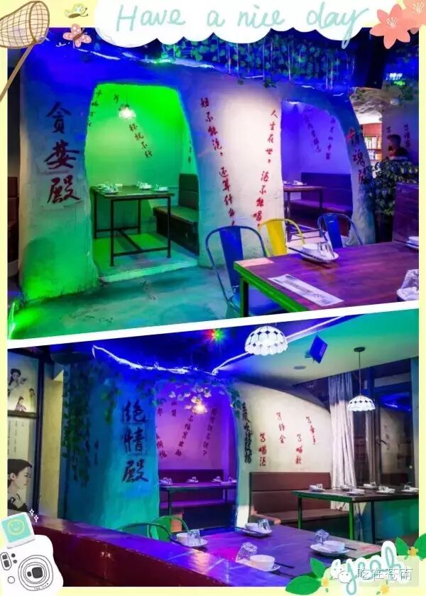 既然餐厅的名字是“白子画”,如果不跟武林,不跟长留山扯上点关系,怎么说的过去呢,可见餐厅到处都可以看到长留山的三殿--”绝情殿“、“贪婪殿”和”销魂殿“。(在这样的绝情殿的包厢里用餐,会不会遇上高冷尊上呢