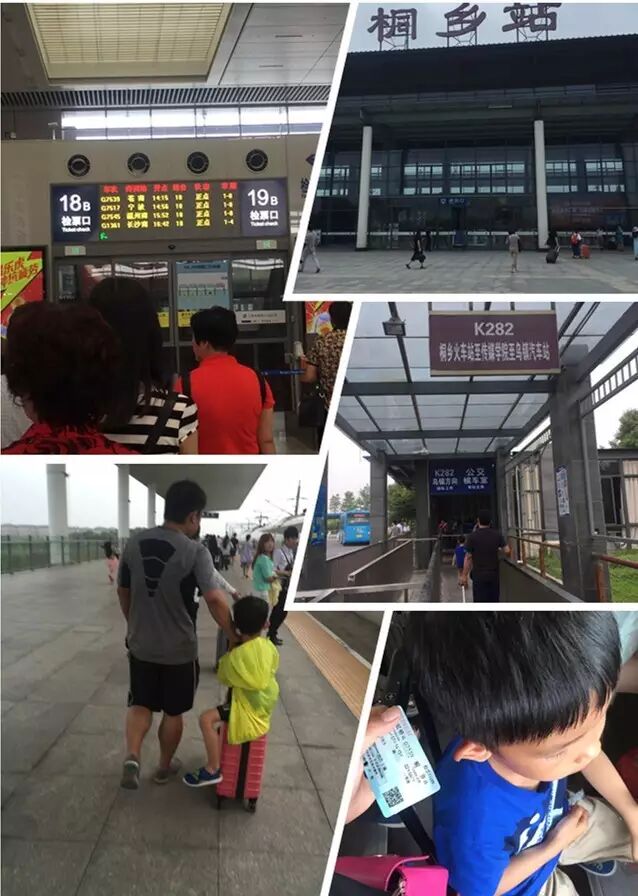 2016年端午节和高考加起来有5天假,图图爸说咱们要不要领儿子出去玩呢,后来转念一想读多少多少本书,也不如行多少多少路,我们全家又来了次说走就走的旅行。目的地---传说中的乌镇。乌镇分为东栅和西栅,这次我们重点去西栅。一场说走就走的旅行第一件事是需要召唤白龙马,解决交通问题。我们选择的路线是:飞机:太原武宿机场飞上海虹桥机场;高铁:上海虹桥机场达桐乡;公交车:桐乡到乌镇西栅。飞机、高铁坐的挺顺利,下了飞机不用走多远就是高铁站。图图爸还以为我们下高铁坐的公交车是专线旅游大巴,上了车才知道是普通城镇公交。事实证明公交车坐的很费劲,人多没排上座位,幸好我强悍的旅行箱再次发挥了作用,儿子还能坐在上面。一会儿小家伙竟然睡着了,图图爸身体扭曲成畸形扶着箱子和儿子。这样晃荡了大约40分钟,好不容易到了站,儿子还睡着。因为图图爸腰椎间盘突出,所以由他负责去打探情况,我艰难地抱着儿子下了车,7岁的小孩对于抱而言已经是个大小伙子了!小家伙还睡得憨憨的,我只好抱着他席地坐在公交站的台阶上让他继续睡,看着和自己一样席地而坐,大包小包的男男女女、老老少少,此时无比觉得自己真像个旅游的啊!图图爸去打探情况回来悲催地说:“老婆,咱们还得转一趟车。”我又艰难地抱着儿子上了车,还好这趟车不算远,也有了座位,可以抱着儿子让他稍微舒服地睡会。眼看快到乌镇了,儿子也醒了。这样的旅程虽然有些心疼儿子,但是想小家伙跟着我们一路奔波对他正是一种锻炼吧。乌镇住宿分为民宿和行馆,民宿大约700多一晚,行馆住宿一晚大约1、2千块,可以在乌镇官网上提前预定。这次我们住的是民宿,所以只能说说住民宿的体验了。话说我们一路颠簸终于到了西栅景区门口,图图爸负责到前方打探,办理入住事宜。这时我和儿子找到一块惬意的临水小台,提前欣赏了一下乌镇的风景。图图爸办好入住找到我们说,这里的民宿都被编了号,住哪间民宿由服务台分配,我们住69号民宿。行李放到行李台就不用管了,就有人负责送到房间。接下来我们可以选择是坐船到69号民宿,还是沿着小镇走到那儿。儿子当然愿意坐船了,而我和图图爸觉得好不容易来了就逛逛吧,看看风景。好不容易说服儿子说晚上坐船更好看,儿子同意走会了。我们终于可以开始我们的乌镇之游啦!