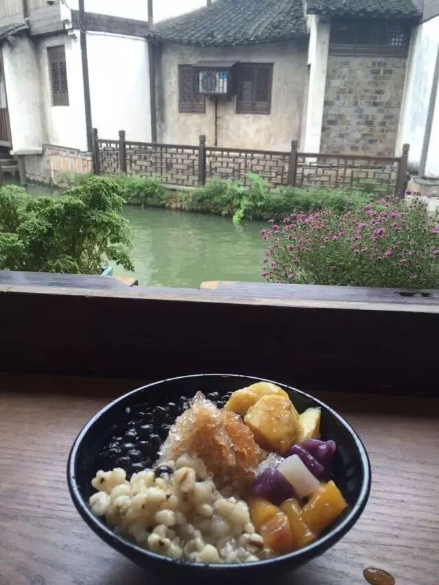 一路游玩,一路都有明显的路牌,游玩到69号民宿后,见了房东,还是由图图爸去交涉,办好入住。房东给我们拿了份早餐菜单,点好饭菜,他会在第二天早上按照点好的菜单为你准备早饭。到了房间,果然行李已经在那等着了。可是一看房间心先缩了半截,没有阳台,没有坐的地方,只有一张床和卫生间,而且还因为房间太小加上南方的潮湿天气,感觉整个房间潮乎乎的,就剩下了卫生间。此刻真心怀念起三年前到西塘住的房间了,带着二楼小阳台,一家人在夕阳下,临水露台上喝着小茶,那个惬意啊!看着眼前这个房间,哪有度假的影子啊!我们后来打听了一下,第二天到服务台(乌镇里有好几个服务台,所以不用再到入口处的的那个)换了间带有阳台的,虽然不临水,但正因为隔着一片小树林,游人变得有些影影憧憧,多了些安静的美!换房时,同样还是不用管行李,放到房东那儿就有人负责你的行李了。70号民宿是幢两层楼,房间很多,也相对大些,标间的规模,一下子让人觉得畅气了,还有阳台可以悠闲地观观景!关键两个房间的钱是一样的。所以去乌镇住民宿一定要问清房间的类型,花一样的钱当然要住舒服些的房间了!要不然会想让你匆匆逃走!乌镇的住宿不只是民宿和行馆,我们看到的最豪华的是号称“十二星座”的地方,其房价每天都不一样,我们当时看的是2700多,周末节假日最贵的时候5000多。当时路过也随手拍了几张,就是这样的临水别墅。人在旅途,食比天大,况且吃货的旅游就是要寻找美食。在乌镇吃饭可以有多种选择:民宿、特色餐厅、特色小吃店。我们先说在民宿吃饭。说到这就不得不说乌镇民宿的管理形式了。在和房东们聊天中得知这里的原住居民已经在2003年的时候被迁出(也就是乌镇因之而名气大燥的电视剧《似水年华》热播的那一年,由黄磊、刘若英主演),留下的民居由青年国旅(当地人称之为“公司”)统一经营管理,被称为民宿。公司聘用夫妻或一家人来管理每幢民宿,所以你看到的号称“房东”的人其实并不是民宿真正的主人。所谓的“房东”,他们负责民宿的日常打扫清理工作,但是公司并不付给他们工资。“房东”的收入来源于放在民宿里的两张饭桌。每幢民宿都被允许放两张饭桌,“房东”自主经营,收入归自己所有。而早饭按人头算,每位旅客的早餐费由公司付给他们13块。为了保证和提高房东提供饭菜的水平,公司每一两年组织房东菜肴大赛。每间民宿都有自己的获奖菜肴。这大师兄找果子的事当然由图图爸负责了,他一般在大众点评上找,可以看到大部分民宿的招牌菜或者获奖菜肴。有的民宿把餐桌设在临街,看着两旁民居,有如在天井中吃饭,伴着屋檐滴滴答答的雨声;有的民宿则把餐桌设在临水的露台上,看着小桥流水人家,伴着家常小菜,哪家都吃不腻。各种特色小吃,象萝卜饼、汤圆、馄钝等,原谅我此时忙着吃没来及照足够多的照片。前面说到我们终于开始了乌镇之游!过了乌镇剧院,来到小巷入口看到一间公共卫生间,儿子想去嘘嘘一下,我和老公就在外面等他。一会儿,一位老者从里面出来跟图图爸说:“我国内国外游了那么多地方,这个卫生间绝对是五星级的,一定要进去看看。”我忍不住好奇,进去了参观了一下,假山流水,人造小瀑,果真是没见过这样的卫生间。原谅我没有办法拍照,如果我当时在里面拍照的话,会被群殴的吧!五星级卫生间的路对面是一家冷饮店,实在长途劳累,看到忍不住想进去小憩一下,点了自己在家没做成功的葛根圆子,坐在临水的窗前,吃着凉凉可口的小饮,我这地道的北方人看着窗外的南方小景,一下子疲倦跑了一大半,小心脏微微的被击中了一下下!初见的乌镇,有小桥、有流水、有斑驳小巷、还有游人悠闲的享受时光!这就是传说中的乌镇啊!正是我想的江南小镇!在民宿小憩过后,出来觅食,此时的乌镇,暮色下垂,华灯初上。一切迎合的撩人心头。吃过饭后,排队登船夜游乌镇,夜色愈重,华灯愈艳,似要穿透夜空,一切妆点的淋漓尽致。乘船到乌镇景区入口,再步行回来,只不过这次走的是不同的小路!路过船夫刚刚给我们介绍的“似水年华”酒吧,他说这是黄磊的酒吧,貌似每一位船夫都是对游客说着同一番话。停下脚步,感受一下乌镇的酒吧氛围,安静的连情人间窃窃私语都消失了,只剩下了心头的惬意!图图爸帮我点了一杯“乌镇之秋”。用这一杯富有诗意的酒祝自己晚安!明日再正式与乌镇相约!第二天,一家人懒懒的睡足了,吃过早饭,继续游乌镇。早晨的乌镇比前一天看到的乌镇多了几分安静,让人觉得愈发休闲!一家人悠闲的找了间茶吧,看看小景,喝喝小茶,打打小牌!满足浸满心头!走在乌镇,除了悦目,还可赏心!可以在邮局让孩子体会一下我们那个年代书信通邮的感觉!还有露天电影院、美术展、艺术展、说书场,可惜北方人是一句也听不懂这江南说书人说的是什么!乌镇的街道溜达得都熟悉了,想找找不同的乌镇,于是一家人找了条小路一直走着。过了一座小桥,眼界豁然开朗,乌镇还有这样一个世界!