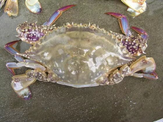 浙游君,还得告诉你呀这判断梭子蟹肥满小技巧:一是小腿最为坚硬,很难捏动的最肥满。二是梭蟹肚脐越结实越肥满。三是看蟹盖两边的尖上,是否有黄红色的东西,它越多证明它的膏黄就越多,当然这只能鉴别母蟹。