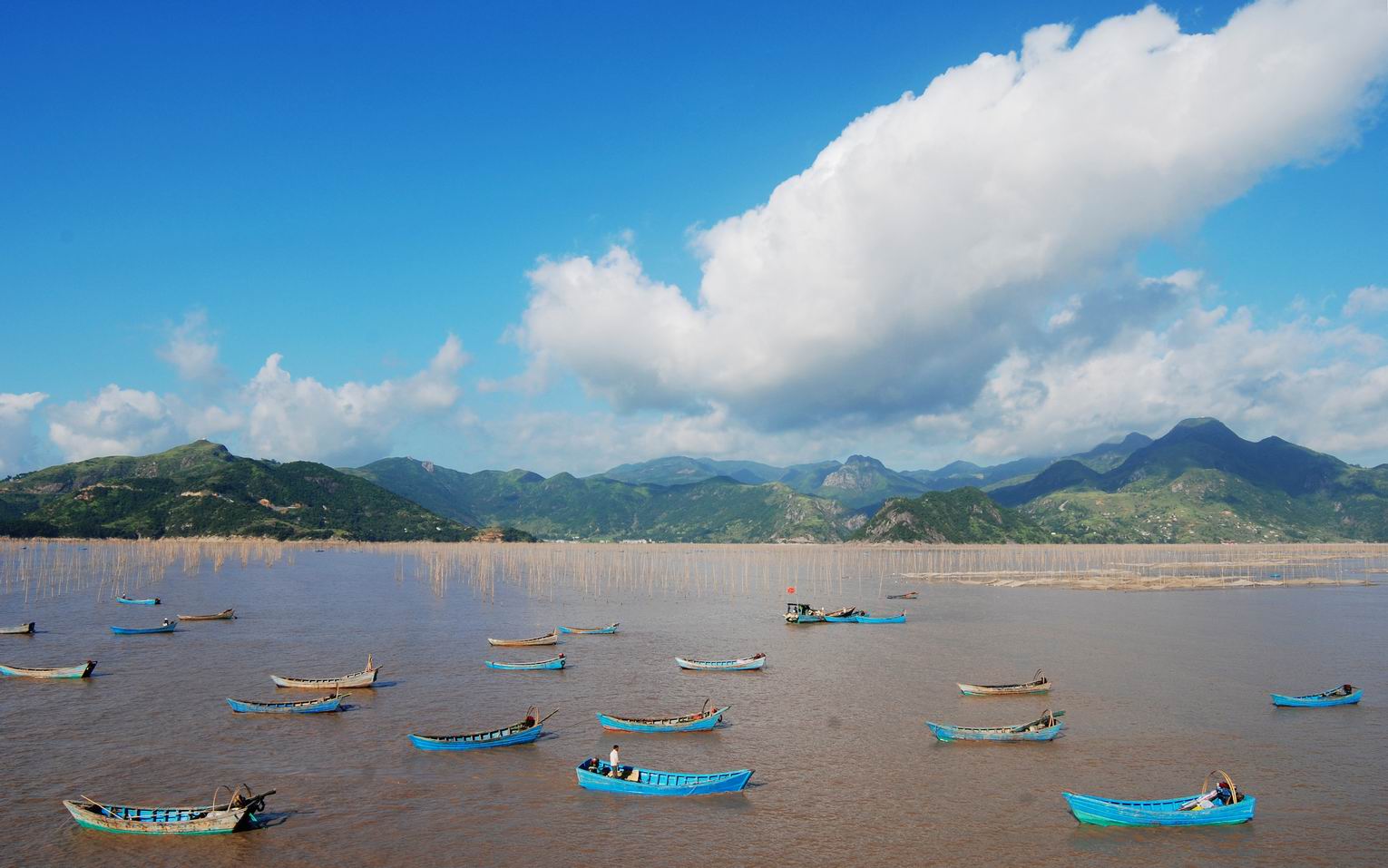 大渔湾位于浙江温州苍南县东部沿海,是苍南县的主要海水养殖区之一。总面积达46.98平方公里,浅海面积约20平方公里。该湾岸线曲折,湾口有较大的官山岛等岛屿为屏障,风浪相对较小,又有较大溪流注入,水质肥沃,适宜进行浅海养殖。目前主要养殖紫菜、青蟹等。大渔湾依山傍海,属浅海潮间带滨海河口湿地类型,三面环山,呈怀抱状,融河、海、山麓、岛屿于一体,集石滩、滩涂、奇石、田园等资源精华于一身,环境优美,清静自然。