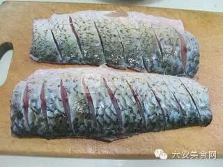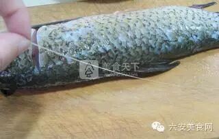 在鱼背上隔两公分左右拉出花刀,不要拉破