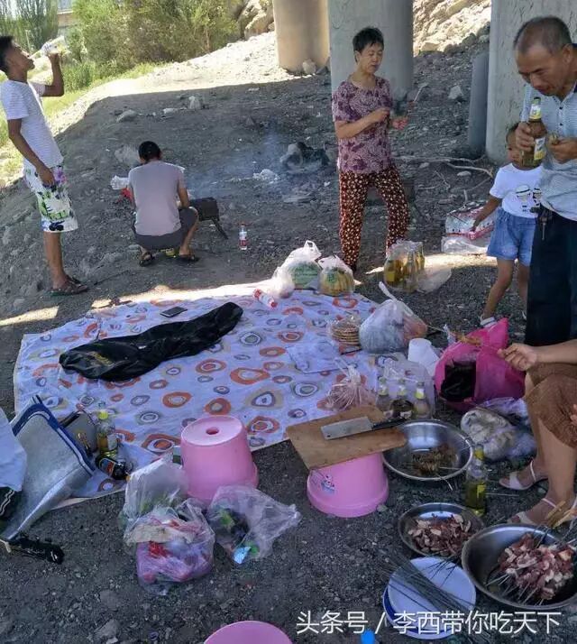 提前一天把主要的食材准备好,肉不用腌制,新疆的羊肉是最美味的,就要保存原汁原味的感觉。烧烤地点距离市区有三十公里,路不好走,在库尔勒郊区孔雀河上游的石桥下,山上有个水电站,很容易找到,每年夏天这里人很多,凉快而且安全,桥底下是石子滩,依山傍水。