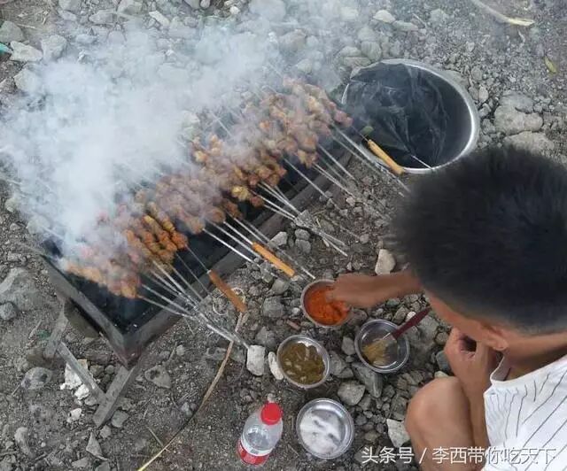 第一波烤羊肉来了,正宗烤羊肉串非常讲究火候和上料,时刻注意肉的颜色变化,两面羊肉变色后,翻至另一面开始上料,孜然和辣子面,少点,带香味腾起后来回翻烤,火候需要根据炭火的强度来决定,一定不能拿明火烧烤,盐要少放。