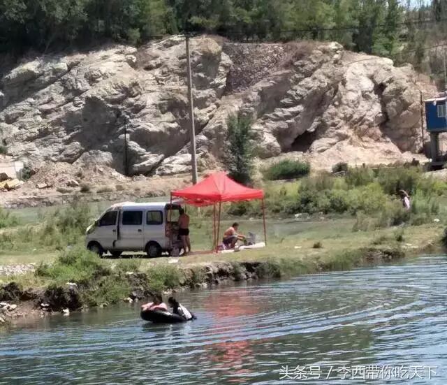 酒足饭饱后就到了河边戏水的时间了,这是对面一家,他们选择了草地上烧烤,五菱宏光可是野外烧烤最实用的神车,但是太阳一升起来,小伞根本抵挡不了炎炎夏日,经验欠缺。