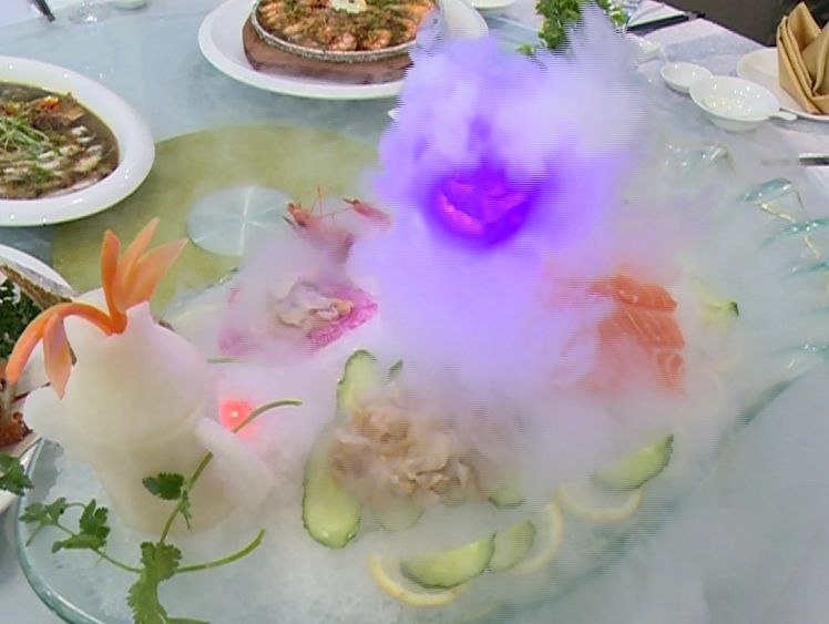 这道菜的亮点在于成形效果,用鱼骨造型出渔船的效果,富有立体感,中间盛放的菜肴,很像载满收获的渔船,这道菜在创意上,满分!