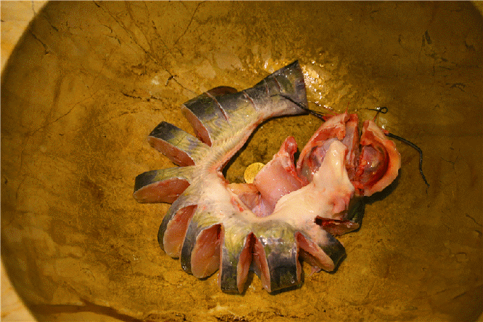 现杀的鱼洗干净开背,加入葱姜蒜,