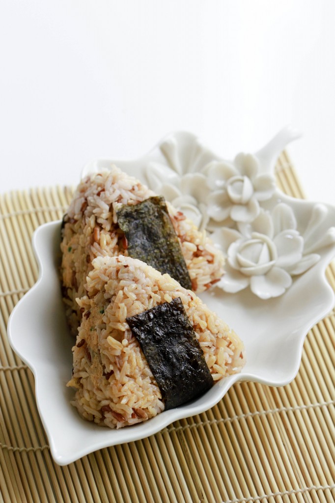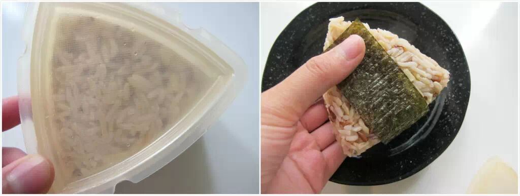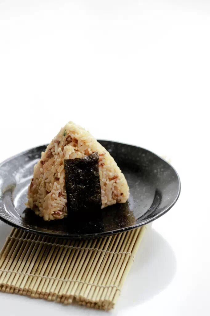 3. 米饭用什么样的?传统版当然是用寿司米,不过前文也提到由于不是健身加餐,所以选择更健康的糙米。不过注意最好是温热的米饭,如果糙米饭放冷了就没有粘性了,做好的饭团很容易散开。