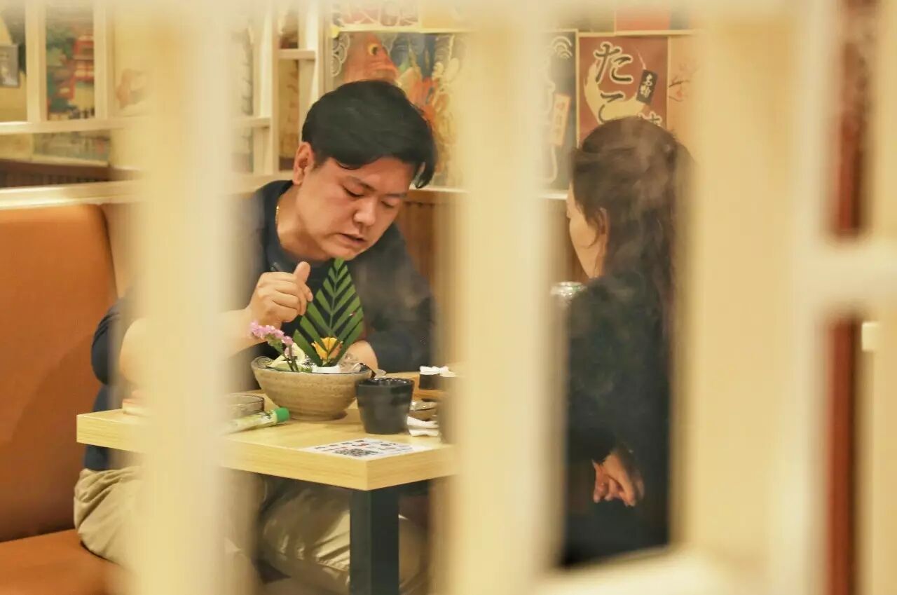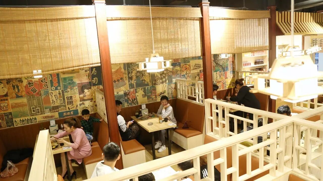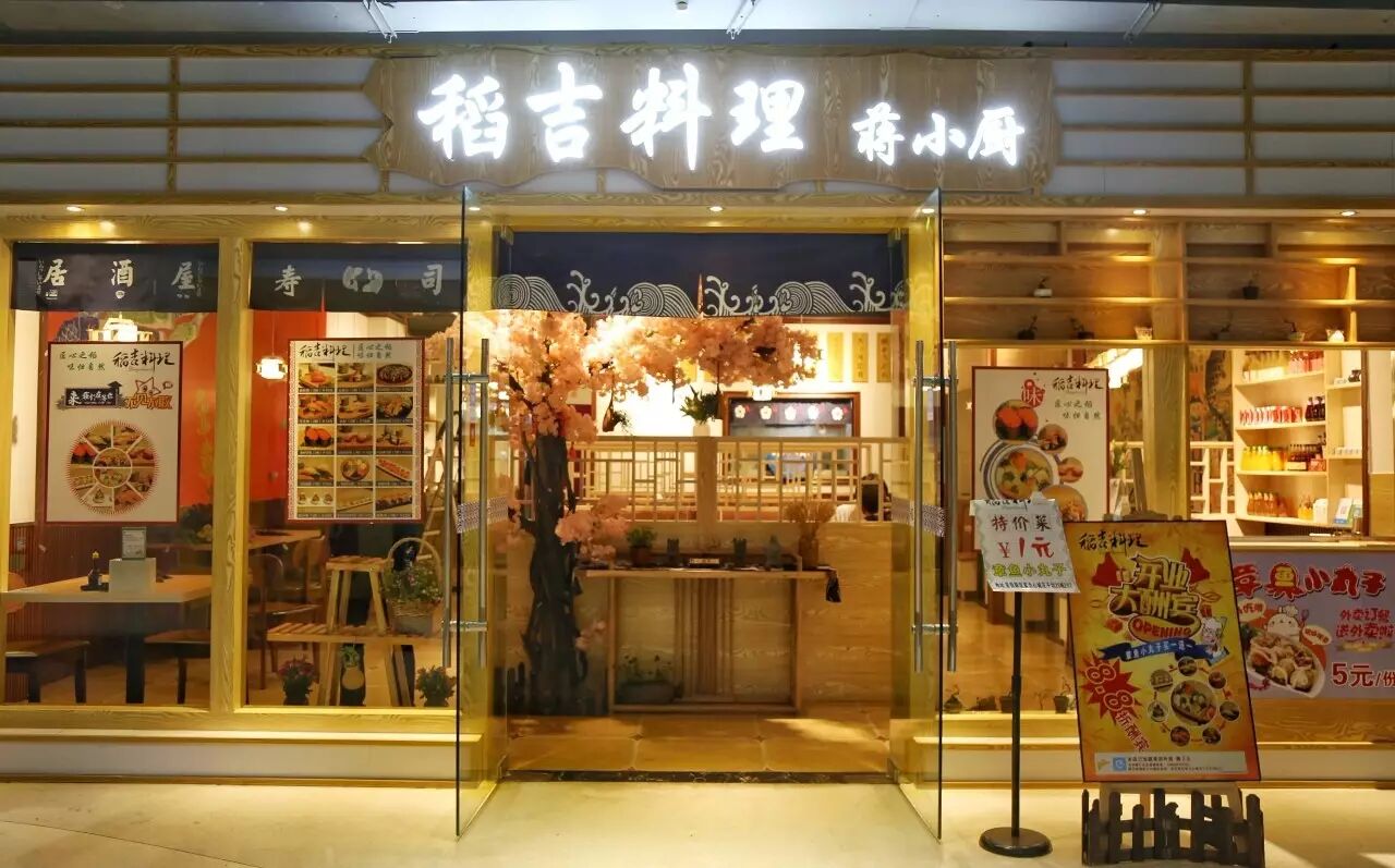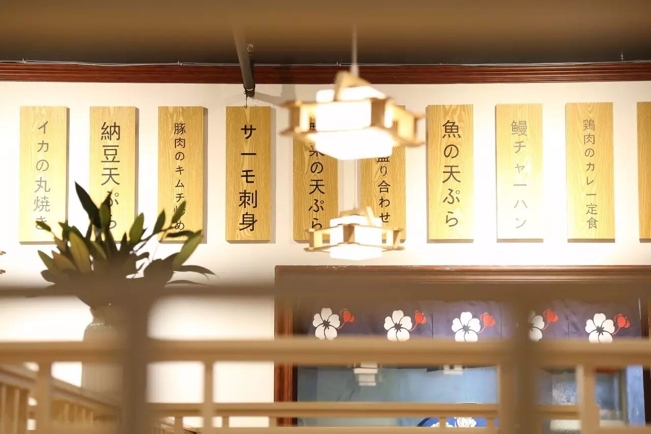 稻吉料理门前的轻柔微摆的布帘和里头那棵浅粉色的樱花树装饰,还有烛台里闪烁着的温暖微光,都让我深觉遇到它该是在夜里的某条深巷,而不是商场。