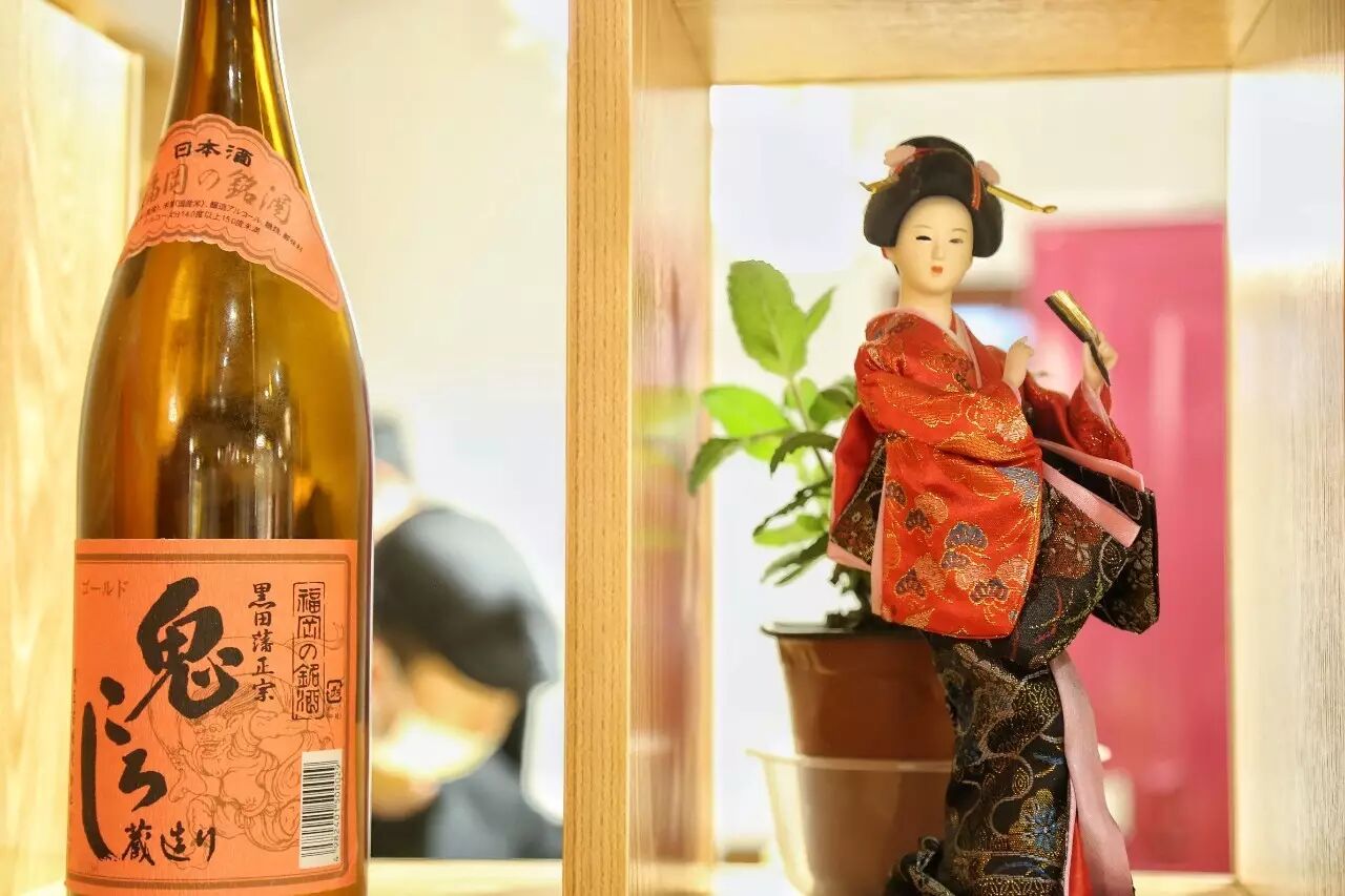 店里简洁温馨的日式风格,有让人一瞬放松下来的魔力,瓶里的花、柜里的酒,简单摆放,着却满溢着温情,只想静静坐下期待点儿什么惊喜。