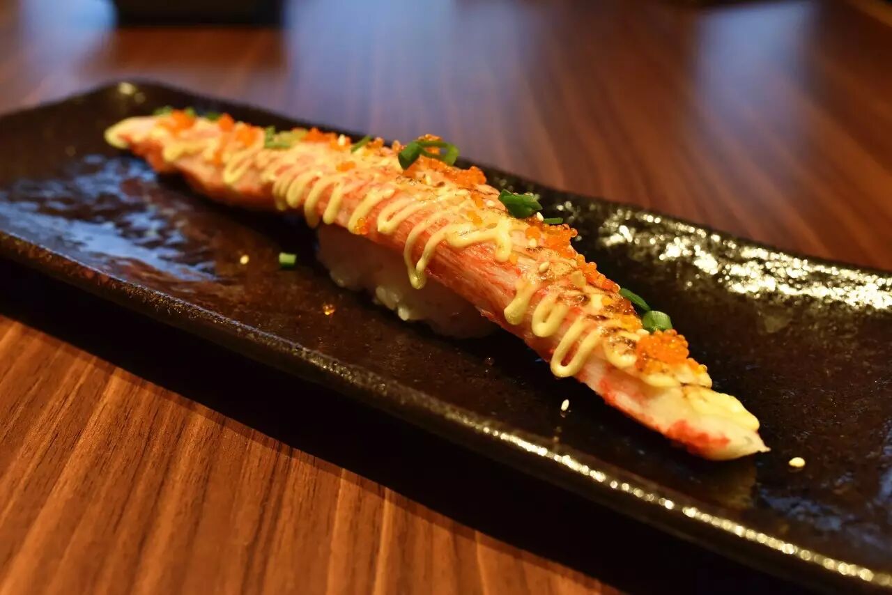 比筷子还要长的蟹柳你试过没?做成这么长的寿司就更加少见啦!丝丝缕缕的蟹柳,肉质紧实鲜美,搭配寿司饭非常和谐。