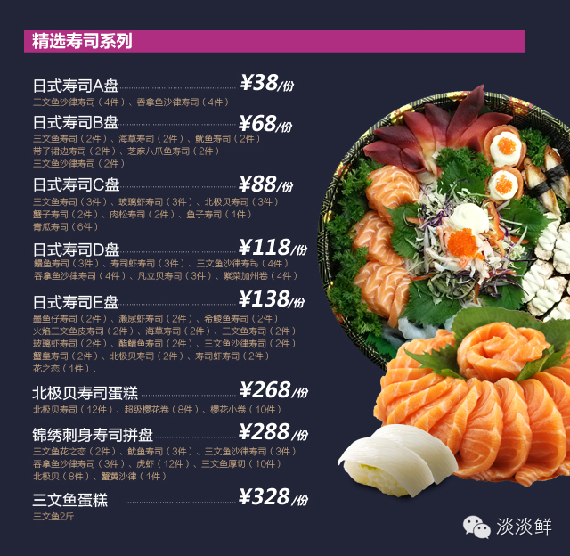 淡淡鲜用最新鲜的食材去造就出每一款的美食,特别系玫瑰三文鱼刺身,虽然光棍节已经过去,但系如果你女友系一名吃货,订购“玫瑰”送比距,既浪漫又实用,而且系净肉称,足斤又足称,绝对系不二之选。淡淡鲜系大众点评网好评度相当高,每一位顾客都比出5星级评价,可以睇得出淡淡鲜无论出品味道都确实非常好,先可以得到甘多顾客好评,甘好既刺身外卖超市你点可以错过呢,快D CALL班朋友一齐食翻餐劲啦!