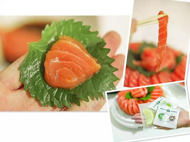 再加上紫苏叶包住三文鱼来食,你会感叹,原来食物既搭配可以甘奇妙甘好食!