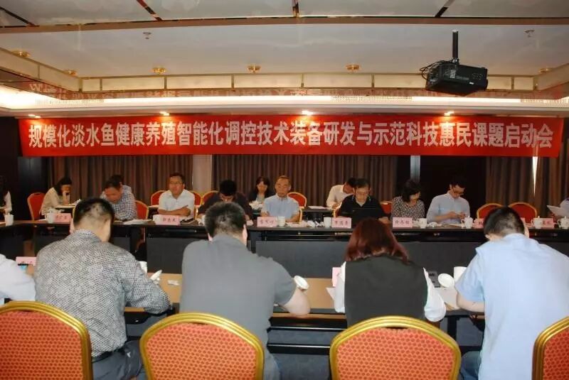 由北京市科委立项,中国农业大学和北京农信通科技有限责任公司共同承担的“规模化淡水鱼健康养殖智能化调控技术装备研发与示范”课题启动会在北京湖北大厦召开。市科委农村处谢莉娇博士,市科委农村中心赵淑红总工,全国水产推广总站李可心副站长,中国电子技术标准化研究院徐冬梅高级工程师,中国农业大学李道亮教授,中国农业大学张小栓教授,中国农业大学教授陈英义副教授,北京农信通科技有限责任公司郭志杰副总裁,福建上润精密仪器有限公司相樟波总经理,江苏中农物联网科技有限公司蒋永年董事长,烟台东润科技股份有限公司马正董事长,上海左岸芯慧电子科技有限公司古成龙总经理,石家庄鑫农机械有限公司胡建良董事长,软通动力信息技术(集团)有限公司王振智,中国电信钱鹏,北京佳格天地科技有限公司顾竹研发副总裁,天津市天祥水产有限责任公司苗建发副总经理等领导嘉宾50余人出席会议。