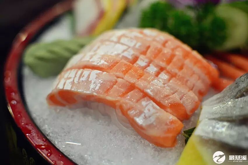 喜欢刺身的小伙伴很少能拒绝三文鱼。一点点芥末和酱油,只要一点点,就能把整个味蕾都唤醒,连带全身心都觉得,啊,好吃。