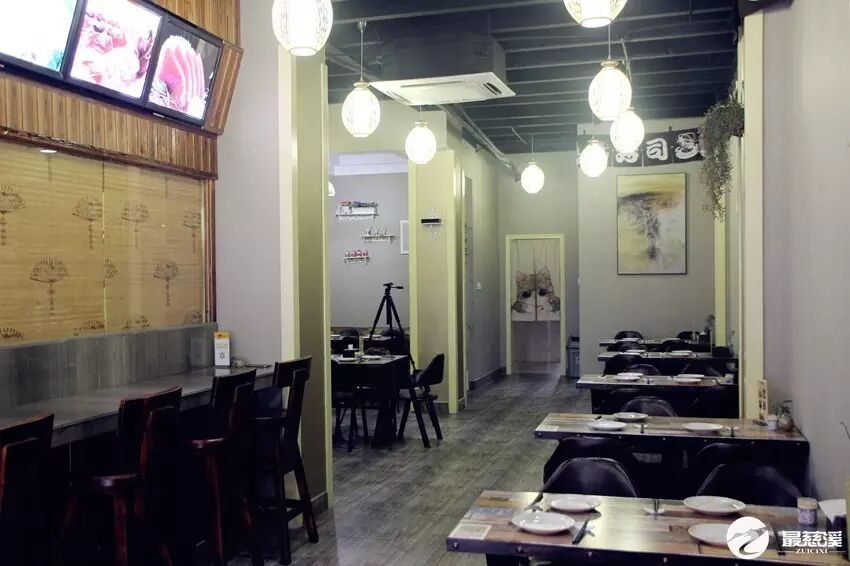 餐厅很素雅,没有什么烟火气,半开放的厨房,还可以看到厨师在里头慢慢地切鱼片。![]()