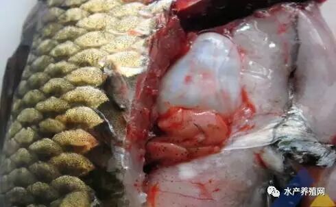 (六)偶然见于在北方冰封期间在水库的水浅,水清瘦、水草丛生的条件下,水草在冰下进行光合作用,也可能引起氧气过饱和,引起几十千克重的大鱼患气泡病而死。