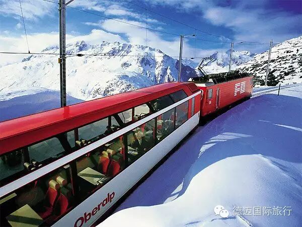 著名的“冰川快车”就是从采尔马特镇发车,向东穿行阿尔卑斯,往返直达东部的另一滑雪胜地——圣莫里茨。一路上峡谷冰川,风光无限。