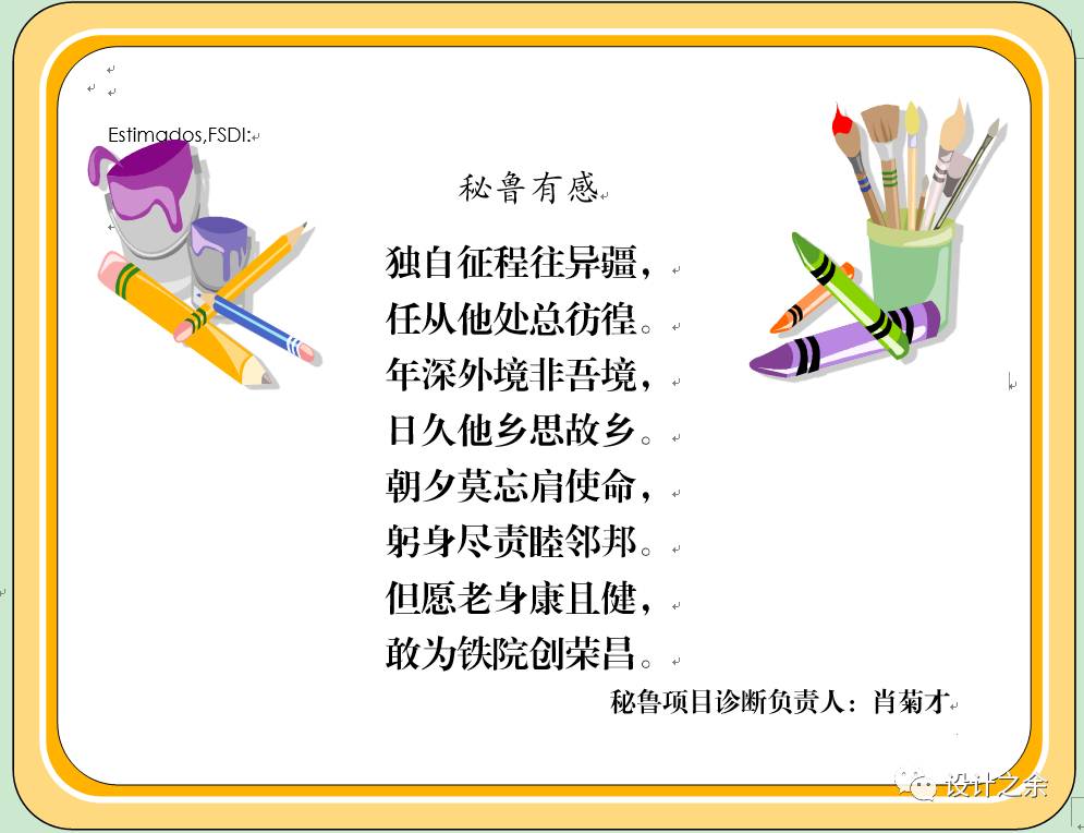 一个由设计院青年们运营的民间公众号:设计之余,力求突破官方的束缚,从另一种视角,用我们的思想、眼睛和笔墨追赶生产、记录生活,让更多人透过我们发出的每一篇带有温度的作品,更多地看到一院人的真,一院人的美,设计人独有的生活和丰富的内在。今年以来“设计之余”累计阅读量已突破18万人次,每次发文阅读量超过2千,部分文章阅读量飙到3万。欢迎诸君投稿、添加或扫一扫关注,亦可添加斧子君微信:ff1176083005,让我们共同为一院点赞吧!!!