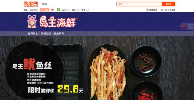 1. 打开淘宝,搜索店铺名称“岛主海鲜”,或者搜索产品“岛主鱿鱼丝”,点击购买。