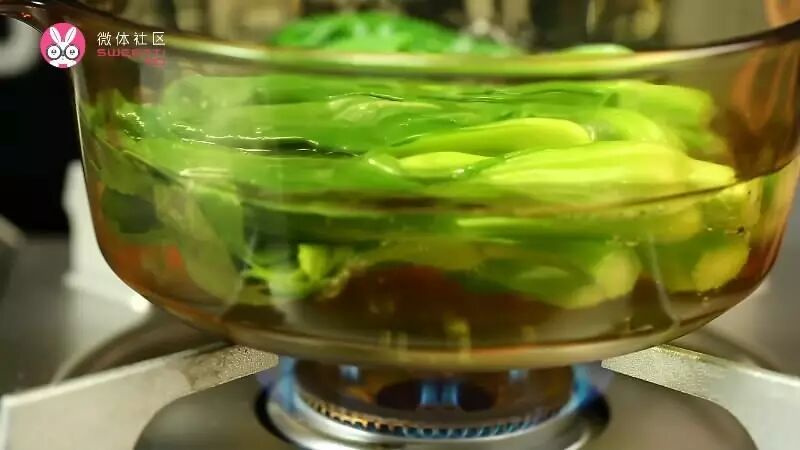 菜苔去外叶留心,切去多余根部,锅里加适量橄榄油和盐,烫熟菜心。